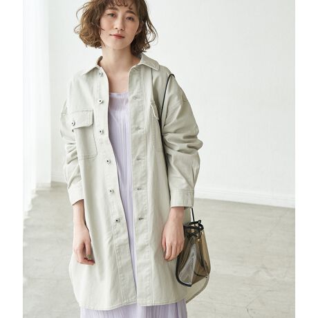 ・ヒップが隠れる、ロング丈のシャツジャケット。