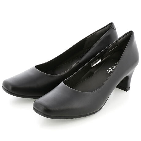 【5cmヒール スクエアトゥ 牛革 EEE プレーンパンプス】