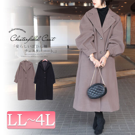 【LL-4L】ラグランスリーブロングコート 大きいサイズ レディース コート ジャケット ロング