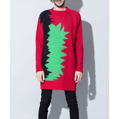 [型番:447010-546K]2020 A/W NO ID. BLACK collection生地の独特の凹凸があるスラブ糸を使い弾力性のある風合いのロングシルエットのニット。継ぎはぎした様な荒々しい編み目がインパクトのあるデザイン。発色の良い糸や古着風の淡い糸などで各色ごとに異なる雰囲気を作り上げている。ロックテイストなスタイルに最適な1着。