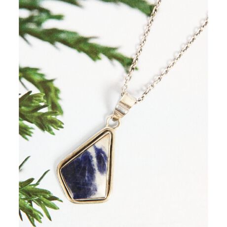 【1点ものアンティーク天然石】ソーダライトひし形ネックレス