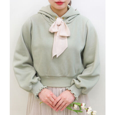 【新作】【裏起毛】シフォンリボンスウェットパーカー