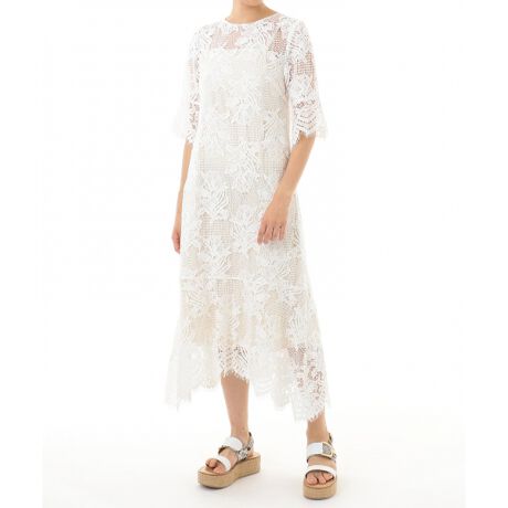 繊細なレースを使用した、コンシャス過ぎないシルエットのフェミニンドレス。