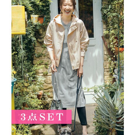 マウンテンパーカー+キーネックのカットソーワンピチュニック+レギンスの3点セット。 あれこれ考えず、今どきなレイヤードコーデが時短で作れる上、それぞれ単品でも着回しやすいシンプルデザイン。レギンスは柔らかい綿タッチ素材。