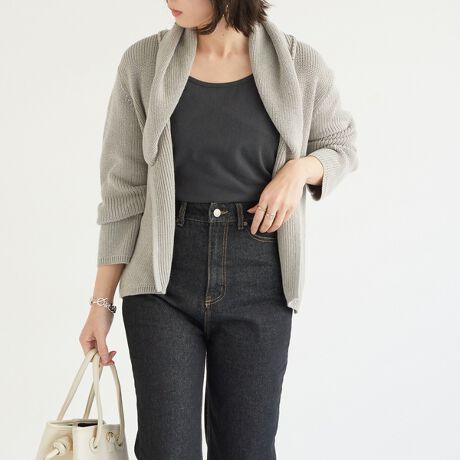 ショールカラーがリラクシーな雰囲気を醸し出すニットカーデ