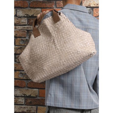 レザーラグジュアリーブランドのバッグを生産していた職人が、手作業で革を編み込み作っています。