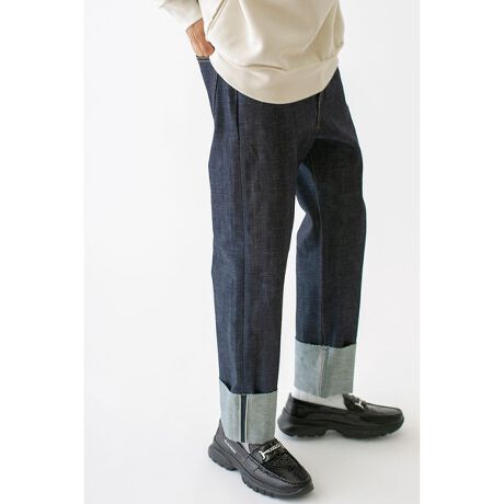 太いストレートシルエットとロールアップデザインで、カジュアルスタイルにクラシカルな感性を加える1点です。