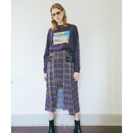 チェックオーバースカート付きミニプリーツスカート