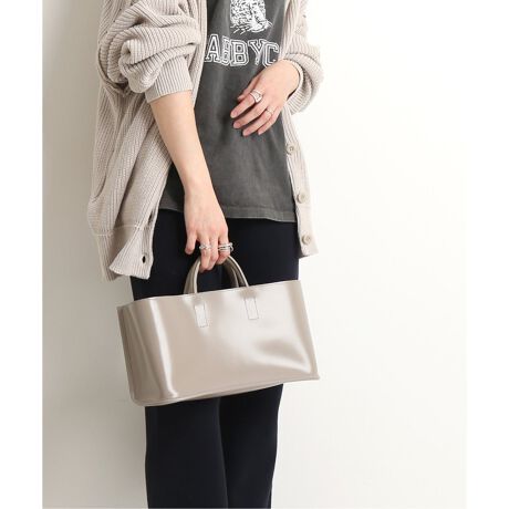 ミニマルなシルエットとツヤのある質感が印象的なハンドバッグ。