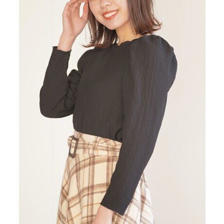 表面感のあるカットソーが上品なパワショルトップス。クシュクシュとしたシボ感が特徴的なカットソー。上品で落ち着いたムードを湛えるアイテムです。トレンドライクな着こなしが楽しめるふっくらボリューミーなパワーショルダー。襟ぐりはメロウ仕上げで顔周りを女性らしくフェミニンに彩ります。ふんわり袖を生かしたエレガントなコーデがオススメ。またオールインワンやサロペット、ジャンスカとも相性の良いプルオーバーです♪ 裏地なし 伸縮性弱 薄手(1枚では透けます) 織キズやだま等みられる場合もございます 洗濯:手洗い可