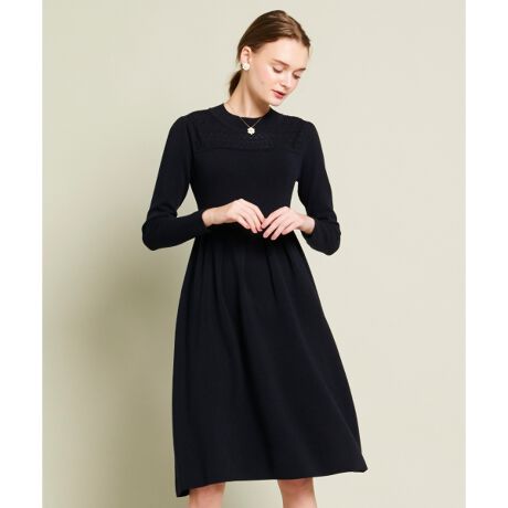 胸元の透かし編みでトレンド感を演出するニットドレス。タックの入ったスカートでメリハリを効かせて、着心地はラクなのにきちんと見えする一枚に。通勤や行事などにもお使い頂けます。また、ワンマイルウェアとしてもおすすめ。今の気分にぴったりな一枚です。■同素材アイテム