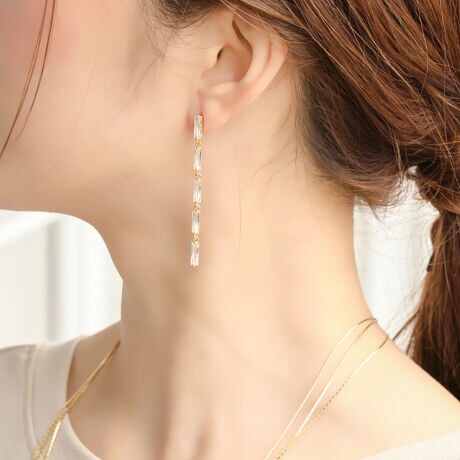 透き通るキュービックジルコニアが光を受けて、ゆれるたびに輝きを放ちます。