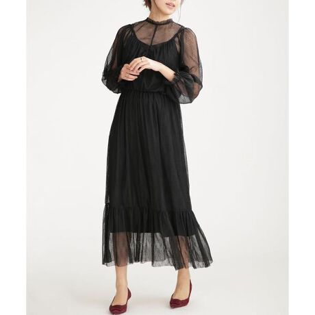 1枚でスタイルが決まる女っぷりの高いワンピース。表情豊かなドットプリーツの素材に、肌を透かすシアー感が大人っぽい雰囲気を確立。結婚式などのお呼ばれにはもちろん、様々なシーンで華やぎを演出してくれるひと品です。