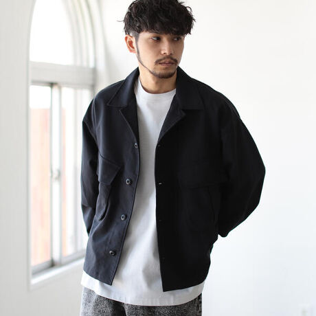 国産素材のポリエステルコットンツイルを使用したミリタリーブルゾン。ビンテージのU.S.ARMYジャングルファティーグジャケットをデザインイメージとし、現代的なシルエットにアップデートした1品。ワイドな身幅とドロップショルダーに対し、着丈を短く設定してトレンドのワイド&ショートシルエットを採用しています。さらに、ワークウェアに使用されるような程よい肉感のツイルを使用し、季節の変わり目にも重宝する万能アウターに仕上げました。