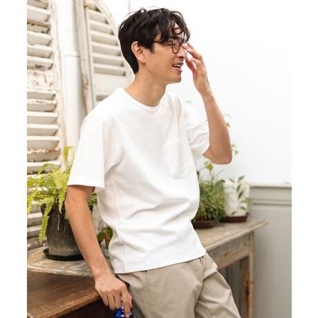 どんなコーディネートにも、もってこいなシンプルなポケット付きT。