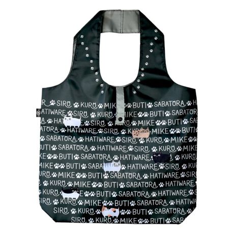 ずんぐりむっくりの三匹の猫のイラストがカワイイ♪人気の猫三兄弟のコンパクトになるエコバッグ!