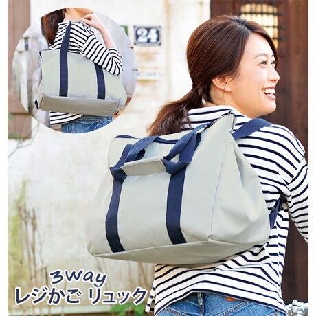 お買い物にとっても便利な3wayバッグ♪トートバッグ、リュック、レジカゴと状況に合わせて使い分けることができます。