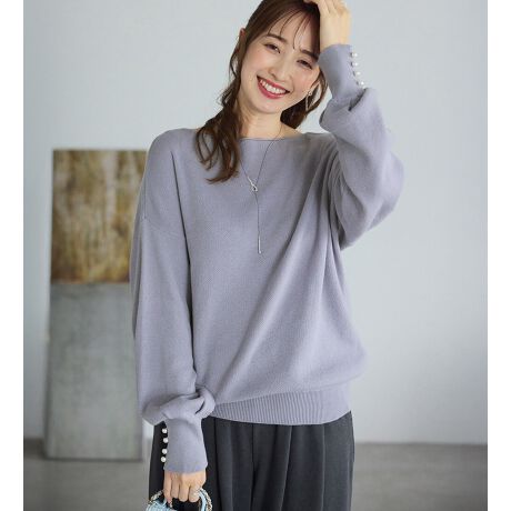 ・ゆる感のあるシルエットを、上品なボートネックデザインですっきりとした着こなしに。
