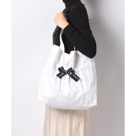クラボウが開発した抗菌・抗ウイルス機能繊維クレンゼを使用したエコバッグです。手提げとショルダーの2WAY仕様、ポケッタブルにもなり、持ち運びにも便利です。エコバッグとしてだけではなくメッセージバッグとしても使えます。ランバンオンブルーのロゴをプリントしたグログランリボンをフロントにあしらいました。リボンを絞ると可愛らしいフォルムになります。【製品寸法】F : 縦:34, 横:35, マチ:12.5, 持ち手:34.5, ショルダー:55.5【素材】綿  ポリエステルリボン部分:レーヨン  ショルダー部分:ポリエステル【メーカーサイズ寸法(実寸)】F : 幅:35cm, 底マチ:12.5cm, 持ち手高さ:34.5cm