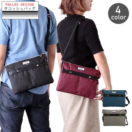 ・落ち着いた色調の杢調ポリエステルキャンバス素材を使用。マチが薄めのスタイリッシュなPALLAS DESIGNサコッシュバッグ。