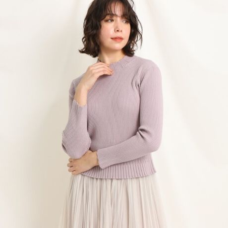 衿と袖口に透かしスカラップのリブを使用し、ウエストにランダムリブデザインをペプラム調に取り入れたプチプラリブニットです。
