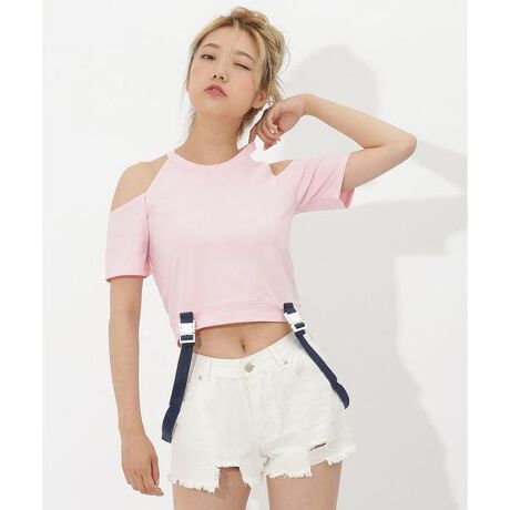 ◇Samantha Vega(サマンサベガ)のオフショルダーストラップ付きTシャツトレンドのオフショルダーを施したシンプルTシャツ。差し込み式ストラップでコーデのアクセントにもお使い頂けます。
