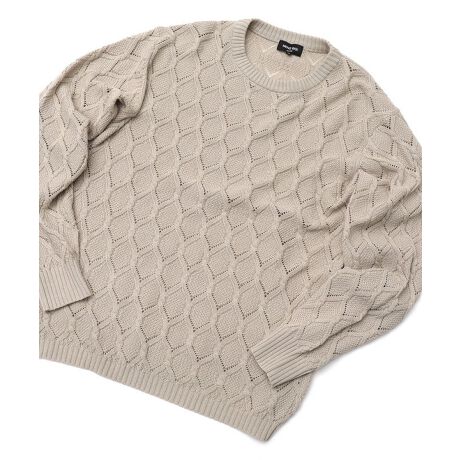 <div>【アイレットの透け感がアクセントなニット】</div><div>やや大柄のケーブル編みのニットです。/div><div>生地に小さな穴を空け、縁をかがったり巻き縫いをし表現される柄のデザインがポイント</div><div>主張しすぎない編み柄の為、コーディネートにも取り入れやすいデザインになっています。</div><div>