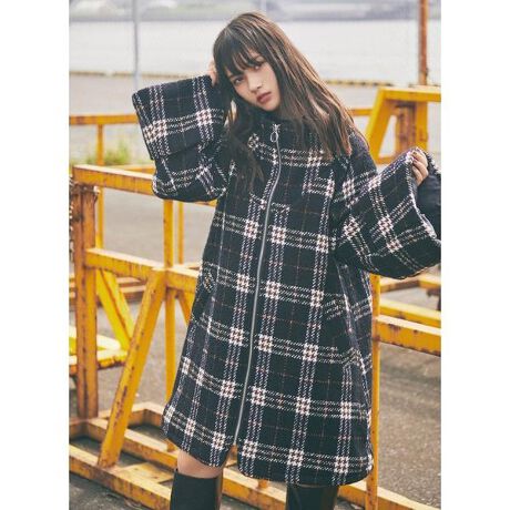 ◇REDYAZEL(レディアゼル)のチェックBIGシルエットコート厳選したループチェックツイードを使用したAラインコート。大胆な大柄チェックに様々な素材の糸を使用することで、立体感が可愛らしいデザインに。フロントのファスナーで着脱がしやすく、温かく着れるのもポイントです。