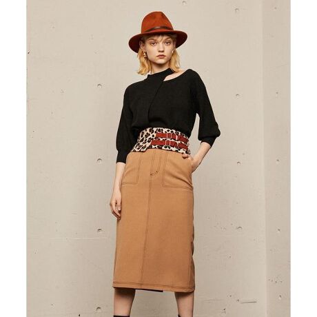 豹柄ベルト付きペンシルスカート