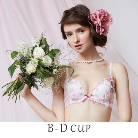 〜 ハンドメイドのような暖かみを 〜 お花の小道を歩いているように、色々な種類のお花を表現。それぞれのお花の表情を可愛らしくみせるために手法を変え、細部までデザインにこだわりました。ひときわ目を惹く大きなアップリケをアシメトリーにあしらい、カップ部分にはお花が咲き誇り、楽しい雰囲気に。ひとつひとつのステッチやアップリケが、ハンドメイドで大切に作ったような優しい印象を与えてくれるシリーズです。