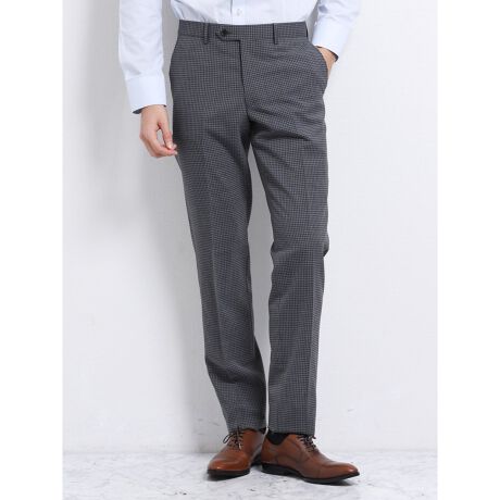 ウォッシャブルストレッチ ウール混スリムフィット ノータックスラックス グレーチェック