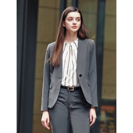 大人っぽいカラーレスタイプですっきりした印象の、Vカラー1釦ジャケット。