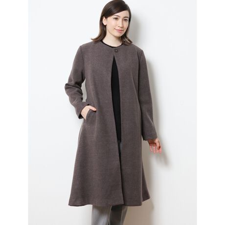 都会的でエレガンスなな雰囲気に仕上げたノーカラーコートです。