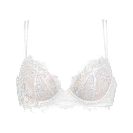 ・前中心の低いワイヤーを使い、脇寄せを強くすることで、胸の谷間を美しく見せる・ (C〜E)カップ…NEWピタッとパッド付き・(E〜G)カップ…サポートパネル付きでバストの脇流れを防ぐ・Gカップ…ボリュームをささえる下カップボーン付き・D〜G 樹脂ボーン・E〜G サポートパネル(リジッドトリコット)・カサブランカの花をモチーフに、麗しいヴェールに包まれたような繊細で可憐な美しさを表現・アップリケにはスワロフスキー社製クリスタル付き・C〜E パッド受け有り/パッド有り(NEWピタッとパッド)・F パッド受け有り/パッドなし・G パッド受けなし