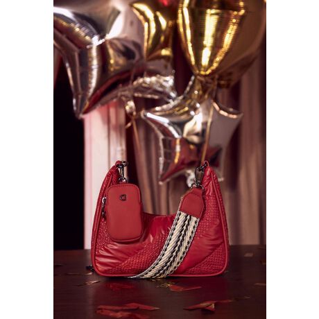 2種類のベルトがついた、サイドバッグとしても持ちやすい大きさのバッグ。キルティングの刺繍には、さりげなくDesigualのロゴが。小さな小物入れには、鍵やイヤホンなどが収納できて、便利です。