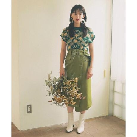 ◇REDYAZEL(レディアゼル)のエナメルダブルボタンアシメタイトスカート今季注目のエナメル素材を使用した、アシメ型のタイトスカート。REDYAZELらしい優しい色展開で、柔らかさと女っぽさを演出できます。エナメルですが後ろがゴム仕様なので、リラックスして履いていただけます◎