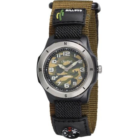 そんなCACTUSから、本格ボーイズ向けウォッチが登場しました。キッズウォッチながら、10気圧防水の高い防水性能を誇る本格仕様。バンドは着脱がラクにできるマジックテープ式で、好奇心旺盛な男の子の冒険心を刺激する方位コンパスも搭載しました!さらに、文字盤・針には蓄光作用があり、暗闇でも視認性ばっちり。まさにアクティブなボーイズにぴったりのアイテムです。