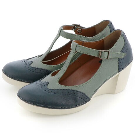 Tストラップウィングチップデザインパンプス