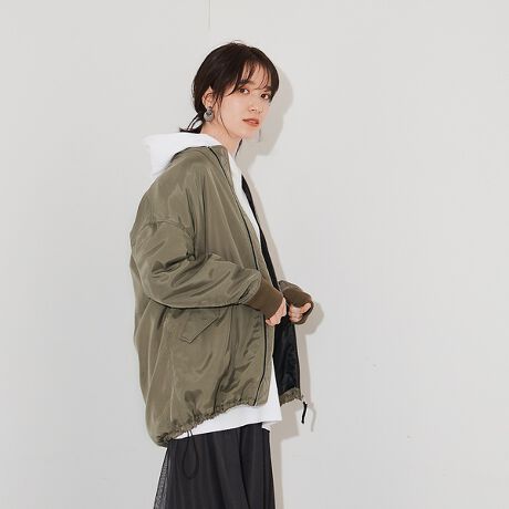 ツヤ感のある素材がレディライクな着こなしに向いているのでカジュアルになりすぎず、スカート合わせがおすすめ!