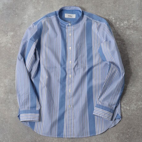 すっきりした印象や、清潔感のあるムードが魅力のバンドカラーシャツ。