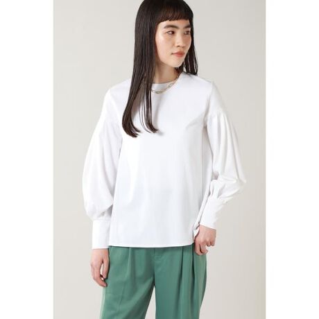 タックを寄せたボリュームスリーブがポイントのクルーネックカットソー。タックをたっぷりと寄せたボリュームスリーブのふんわりとしたシルエットが、女性らしい着こなしへ導きます。パンツにタックインしてマニッシュに、スカート合わせでフェミニンなスタイルと、汎用性の高さもポイント。合わせるアイテム次第で、様々なコーディネートをお楽しみ頂ける1着です。
