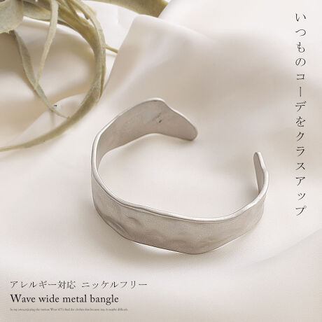 【F】ウェーブワイドメタルバングル 大きいサイズ レディース アクセサリー アクセ アクセ バングル