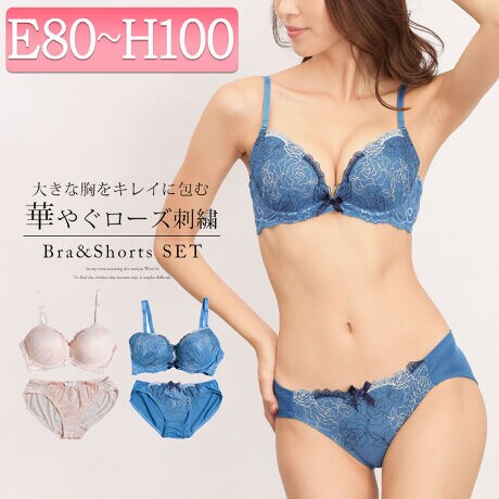 【E80-H100】刺繍 ブラ&ショーツ セット 大きいサイズ レディース 下着 ランジェリー