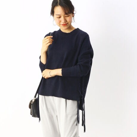 サイド編み込みデザインプルオーバーニット