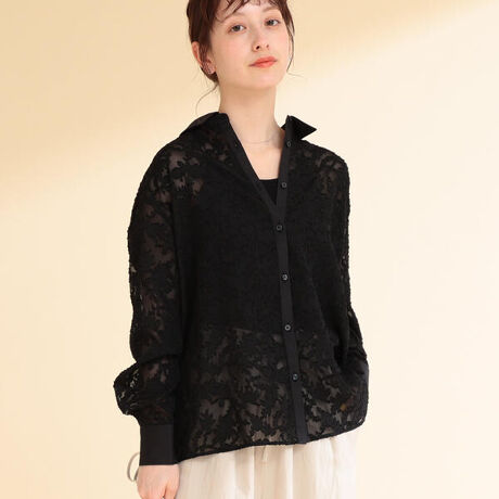 抽象的な花柄のカットジャカード生地を使用したオーバーサイズのシャツ。透けすぎない程よいシアー感は、トレンドを抑えつつ挑戦しやすい1枚。襟・前立て・袖口にはコットン見えする合繊素材をポイント使いしています。