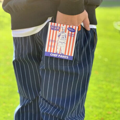ワイドなシルエットながらも武骨になりすぎないワークシーンに根ざしたシェフパンツ。