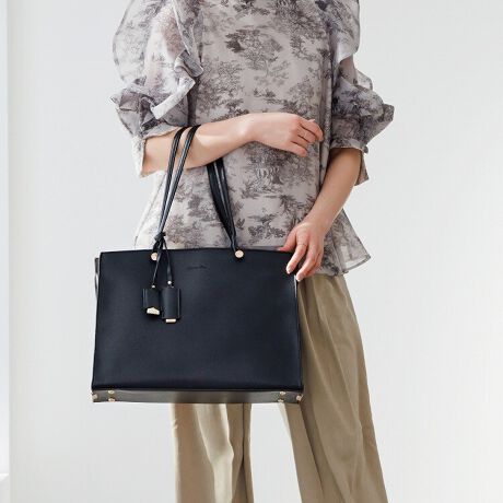 仕事用で購入しましたが、バイカラーがアクセントになって、使い勝手もよいので、気に入っています。置いた時にもくたっとならず、型崩れしにくそうです。ポケット部分がマグネットでとめられるともっと良かったです。