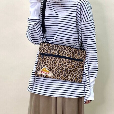 コーディネートのアクセントになるKELTYレオパード柄バッグ。