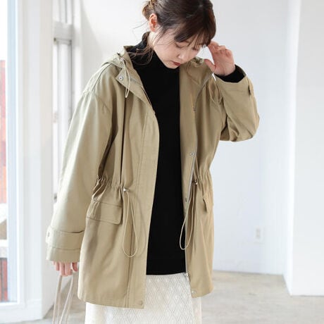 ウエストのドローコードでシルエットの調節が可能。柔らかな質感で羽織りやすく、無駄な装飾の無いシンプルさも魅力的で、年齢や体形を選ばずに着用できるのも嬉しいポイントです。