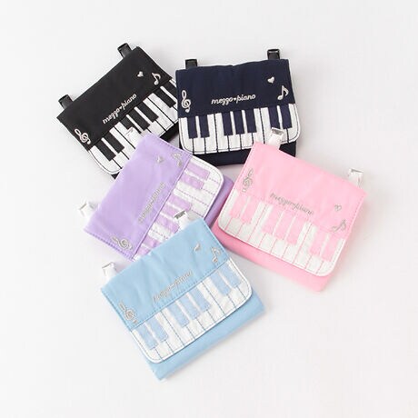 乙女心をグンと掴むピアノモチーフの移動ポケットです。ティッシュやハンカチなどの必需品をひとつにまとめられる便利アイテム♪ 豊富なカラーラインナップで、お気に入りが見つかること間違いなし。内側にはお名前を記入できるタグつきです。